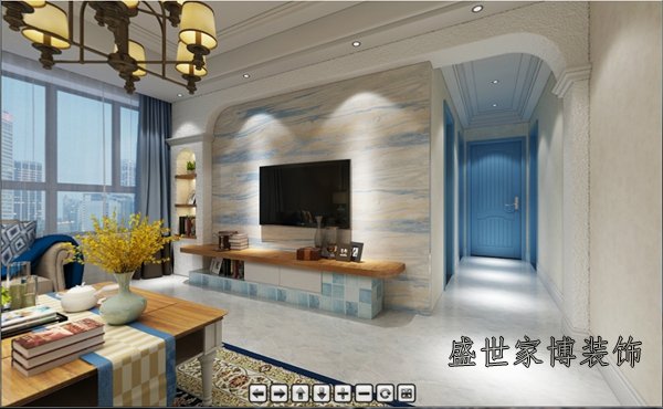 客厅装修效果图,电视背景墙颇有一种海天一色的感觉